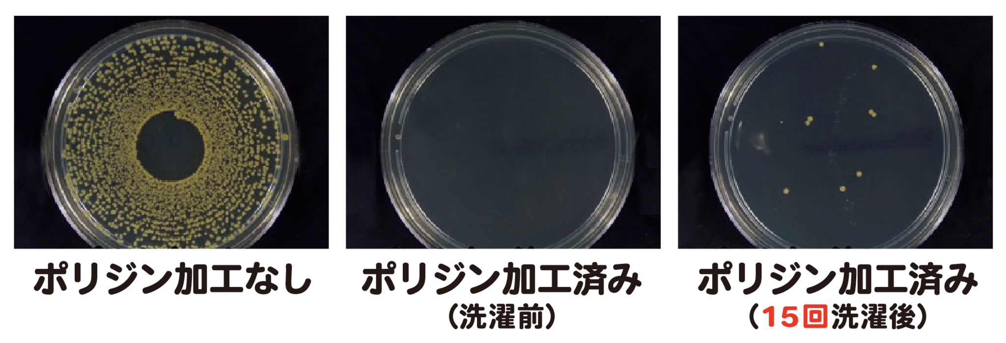 ポリジンの抗菌防臭加工は繊維そのものに施されているので、効果が長年持続します。