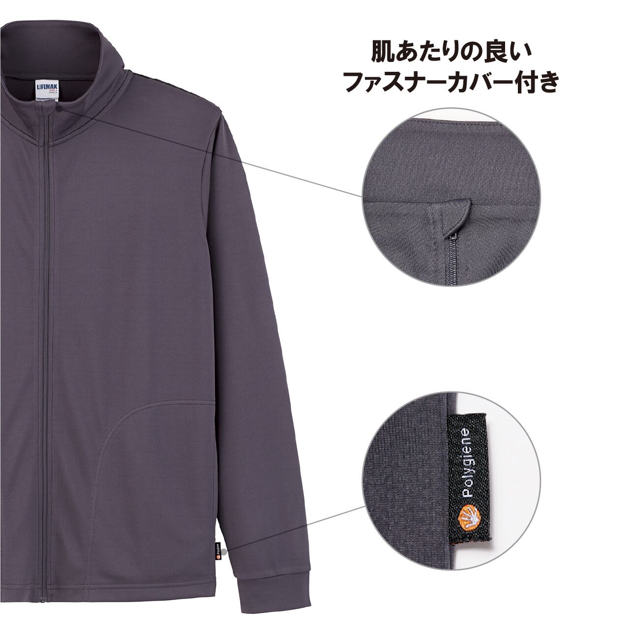 ●軽く羽織れてデイリーユースに最適。襟元のファスナーカバーや、UVカットもうれしいポイント。
