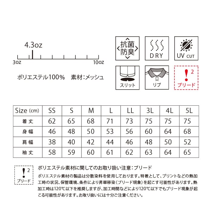 【素 材】ポリエステル100%、メッシュ