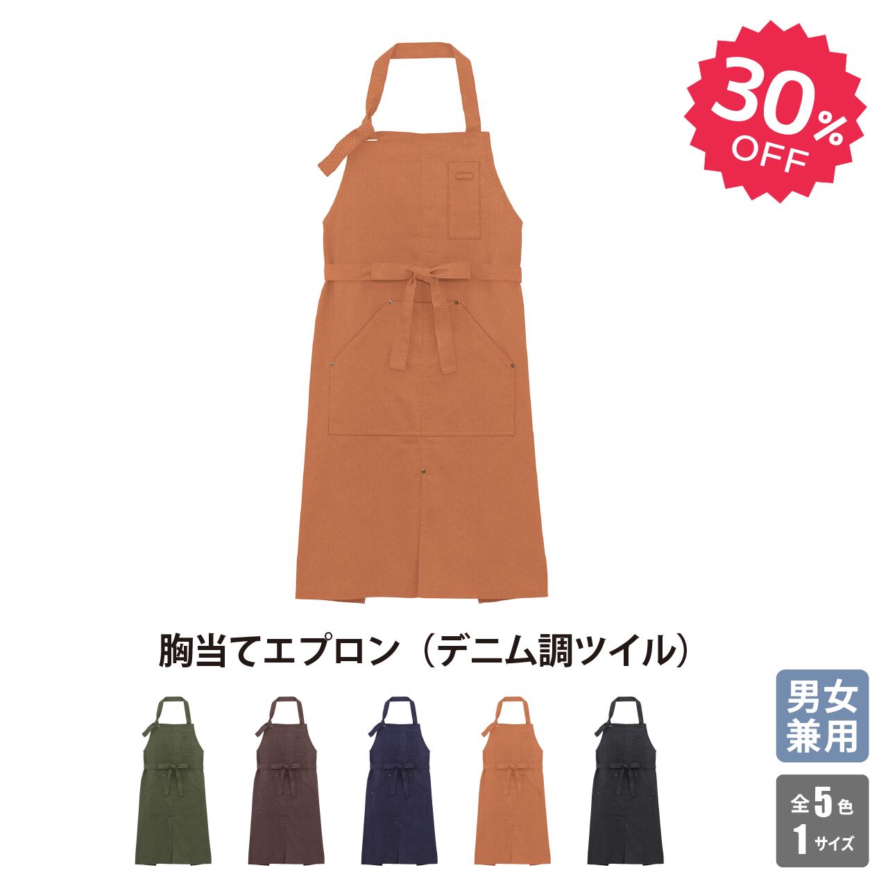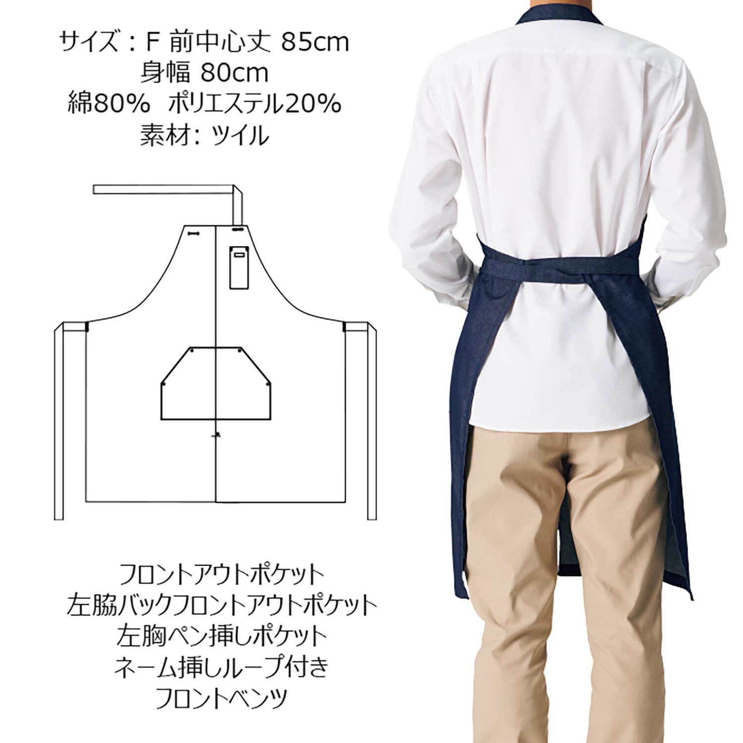 ●ハリ感のあるデニム調生地のカジュアルエプロン。