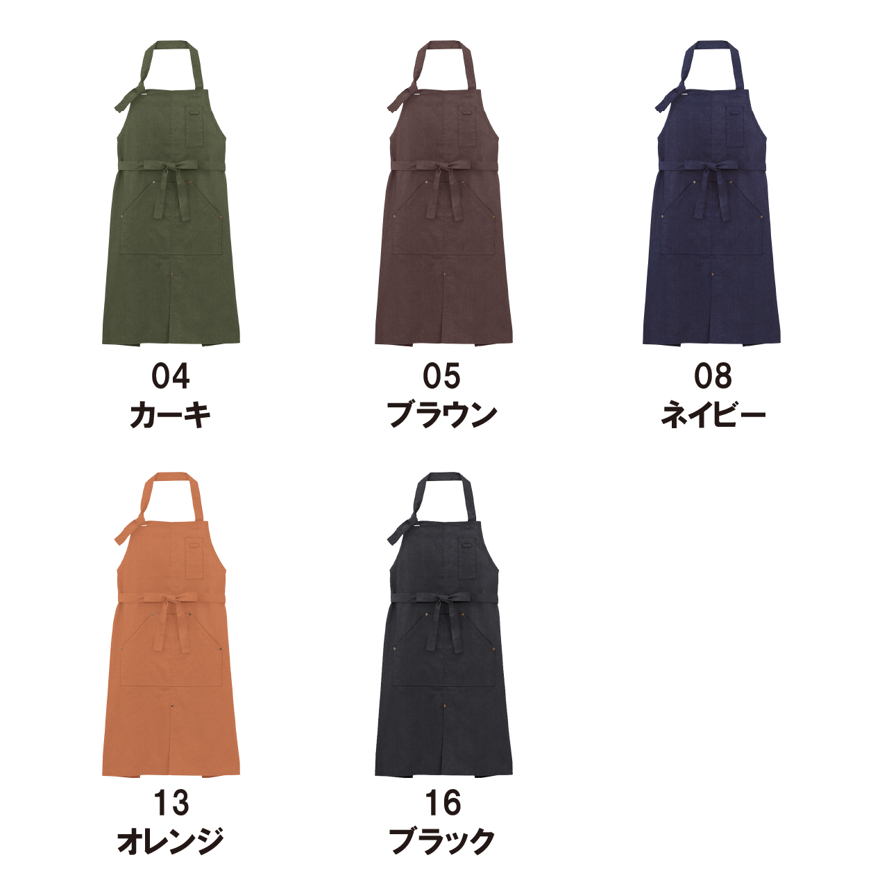 ●ハードに使えるポケット豊富なエプロン。フロントアウトポケット、左胸ペン挿しポケット、バックポケット。