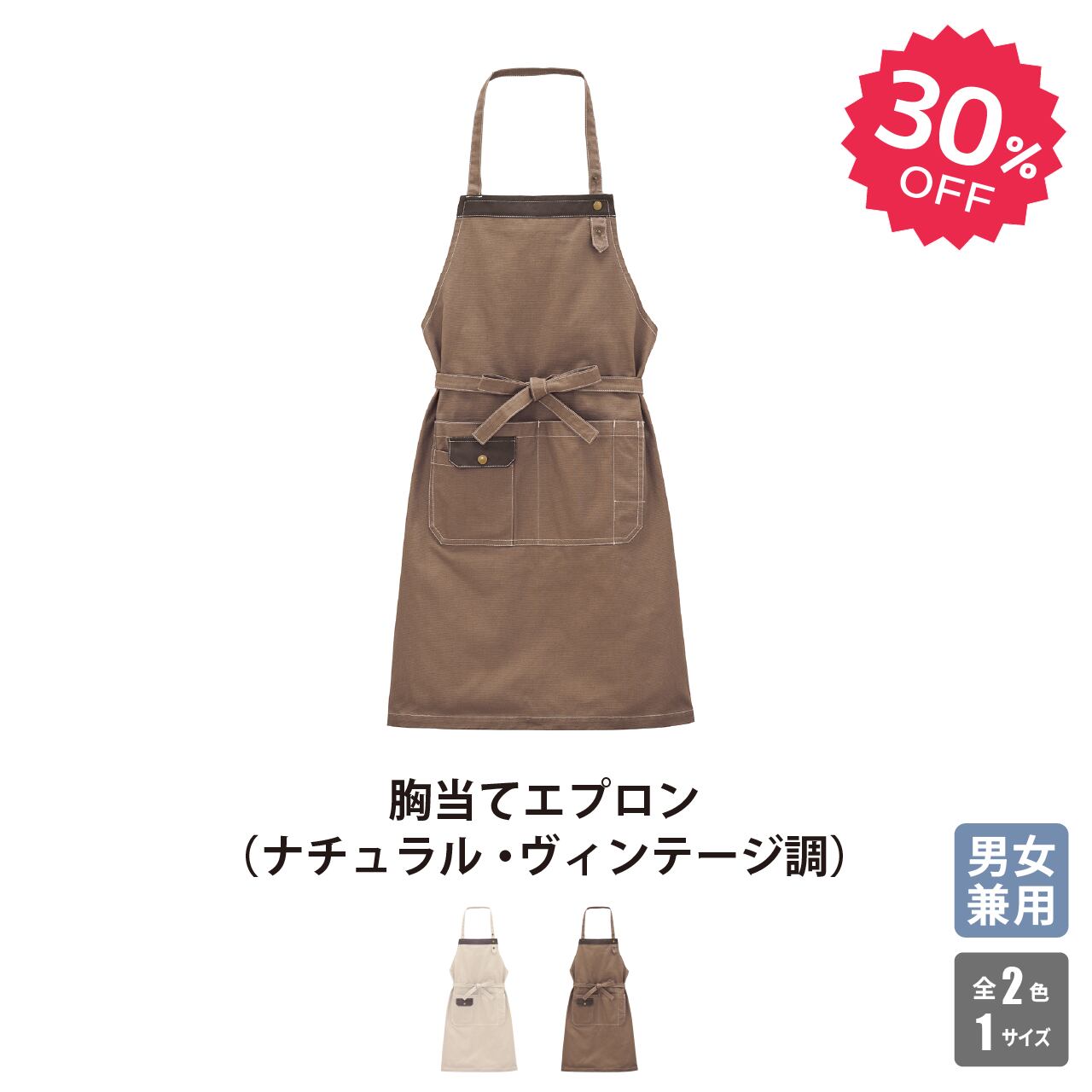●タフな印象のヴィンテージ風コットンエプロン。