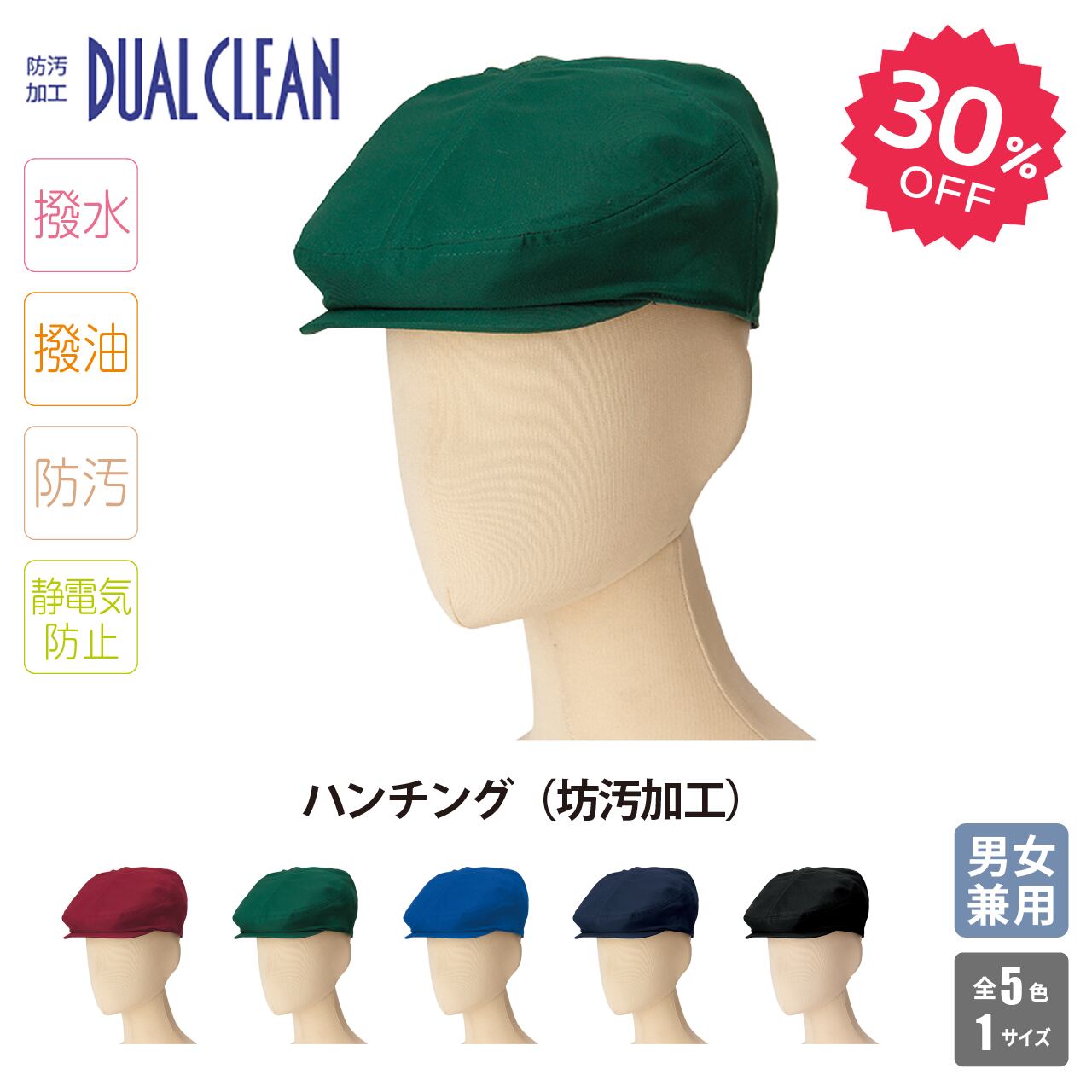 ●汚れにくさ(撥水撥油性)と、汚れの落ち易さ(SR性)を兼ね備えた、坊汚加工デュアルクリーンのハンチング