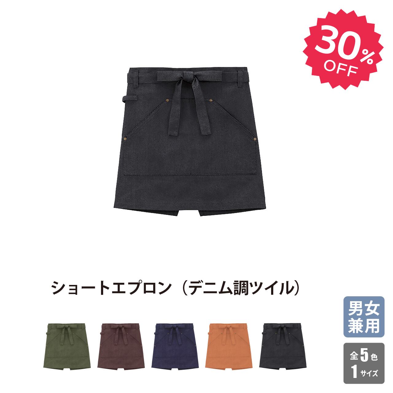 ●ハリ感のあるデニム調生地のカジュアルエプロン。