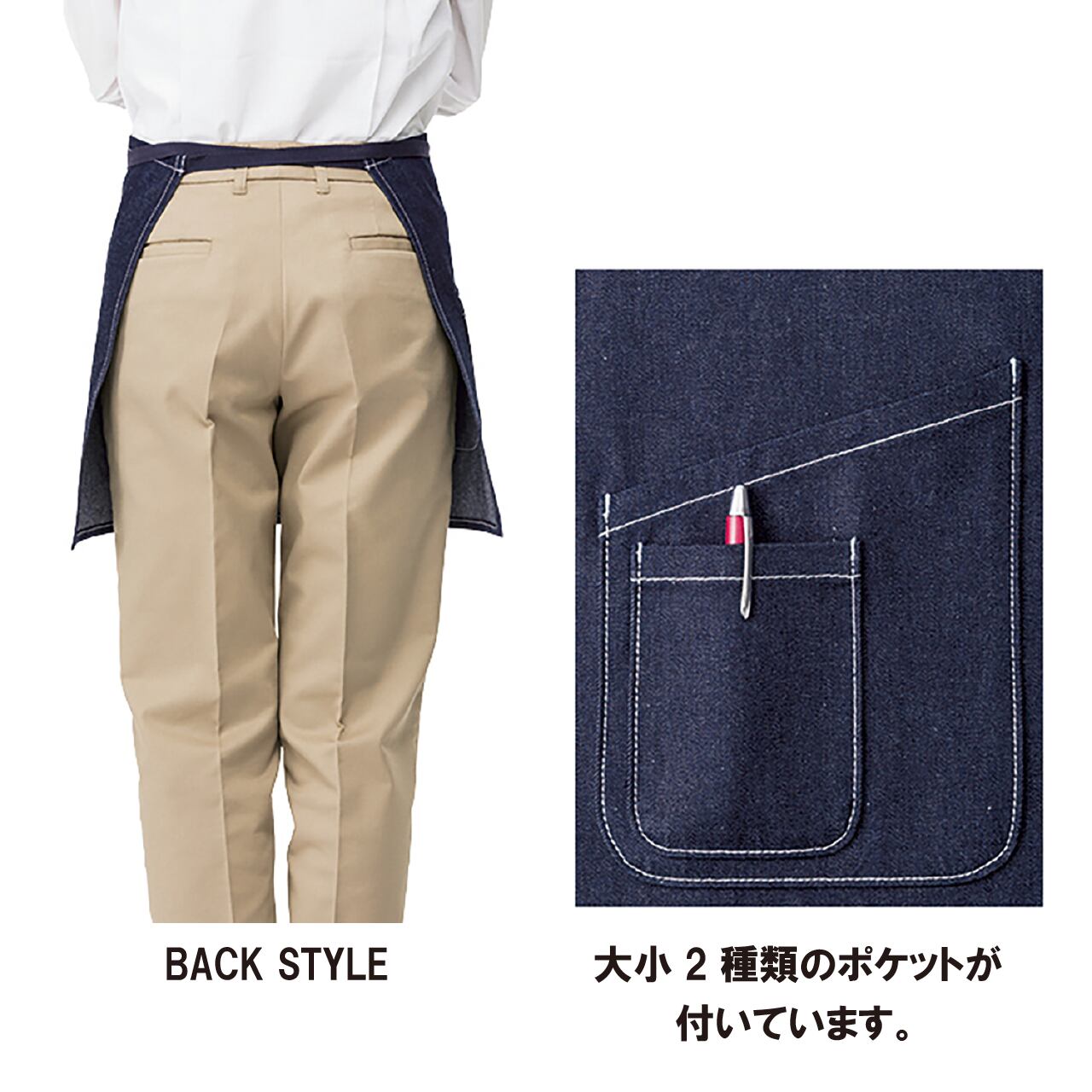 ●丈夫なデニム素材エプロン。