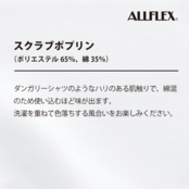 ポリエステル65%、綿35%のダンガリーシャツのような肌触り。使い込むほど風合いの出る素材感のスクラブ。