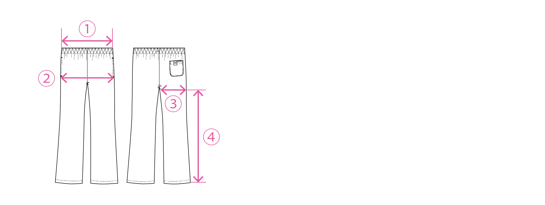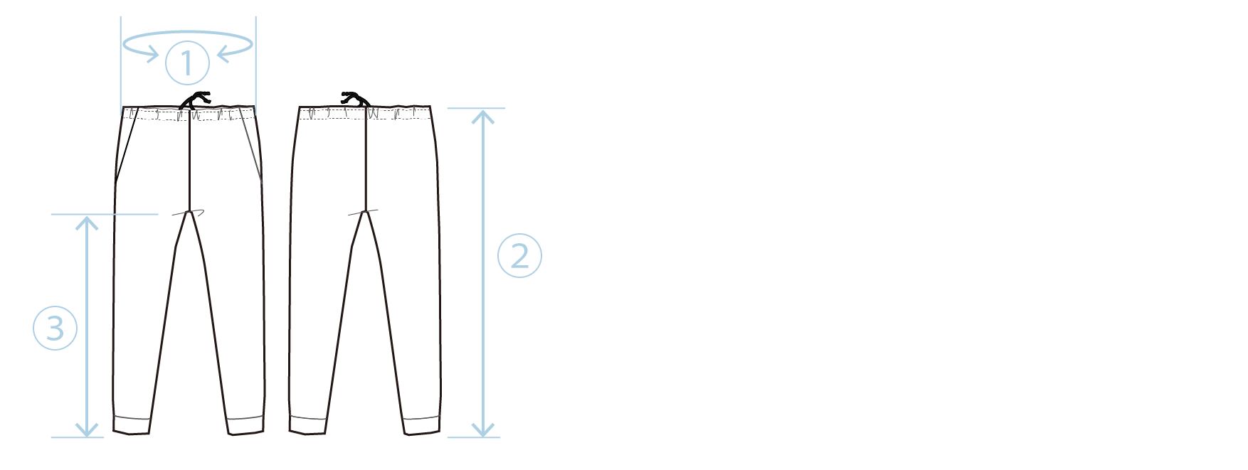 ②総丈:ウエストの上から裾までの長さ